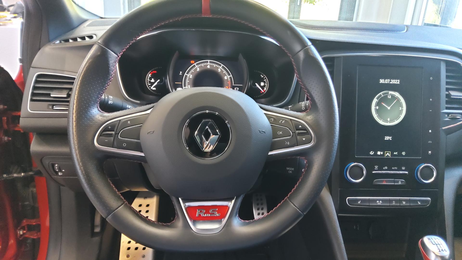 ABS avec aide au freinage d'urgenceAffichage tête hauteAide au démarrage en côteAlerte de franchissement de ligneBouton d'activation RS DriveCaméra de reculCapteurs de pluie et de luminositéCarte Renault mains-libres (accès, démarrage, condamnation à l'éloignement)Climatisation automatique bizoneCompatibilité Apple CarPlay et Android AutoCondamnation automatique des ouvrants en roulantDétecteur de fatigue du conducteurDouble-canules d’échappement peintes Gun metal greyEtriers de freins rouges siglés BremboJantes 19’’ Jerez spécifiques, finition diamantée à liseré rougeLève-vitres arrière à impulsion avec fonction anti-pincementProjecteurs avant Full Led Pure VisionRégulateur et limiteur de vitesseRétroviseur intérieur automatique jour/nuitRétroviseurs rabattables électriquementRenault EASY LINK : système multimédia connecté avec tablette tactile 9,3”, navigation embarquée avec cartographie europe, connectivité Bluetooth, radio DAB, commande vocaleSièges avant chauffantsSystème 4-control (Chassis à 4 roues directrices)Système de contrôle de trajectoire (ESC) et fonction antipatinage (ASR)Système de surveillance de la pression des pneusSystème Isofix aux places latérales arrière et passager avant