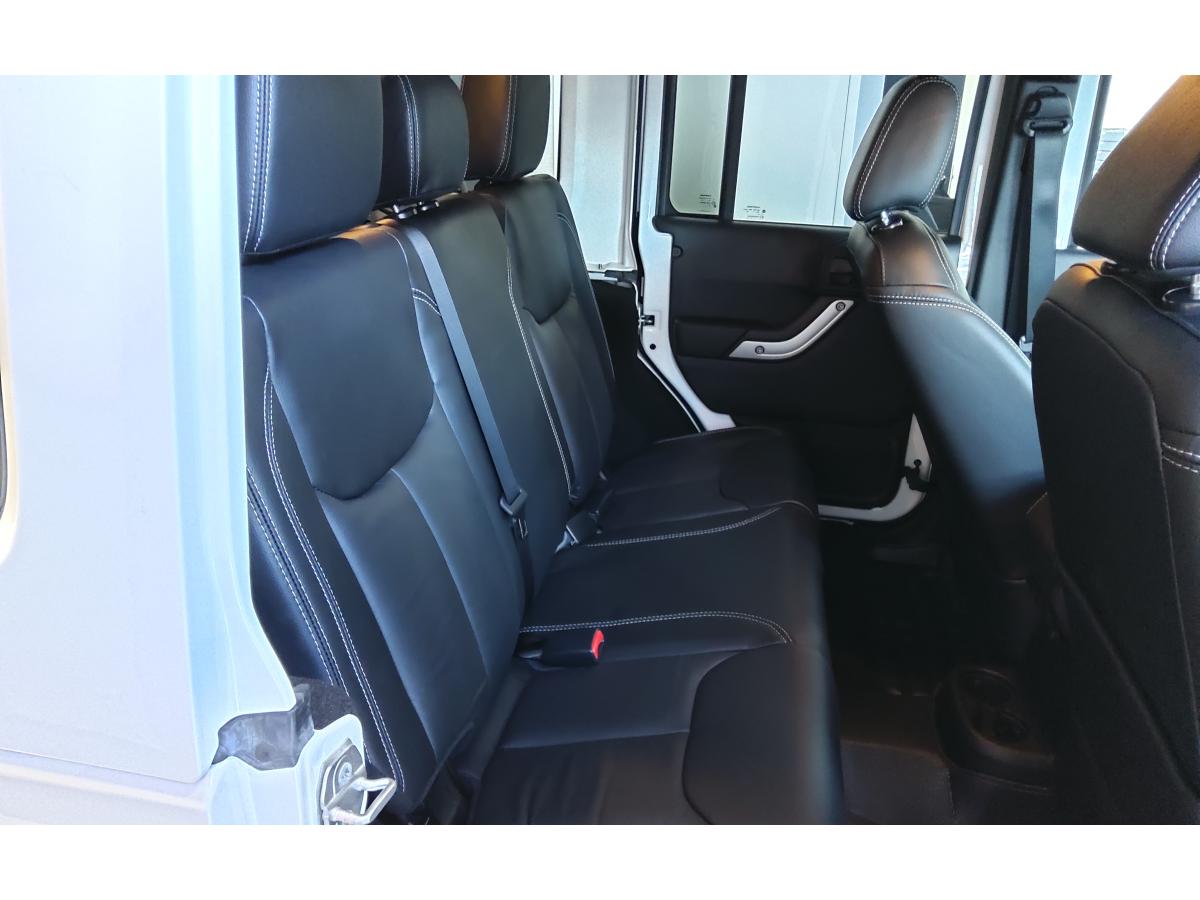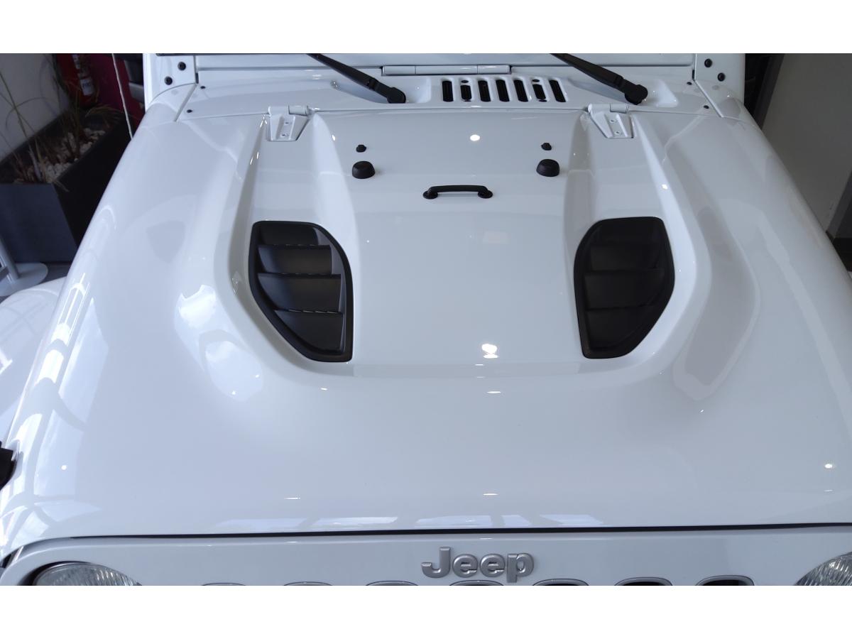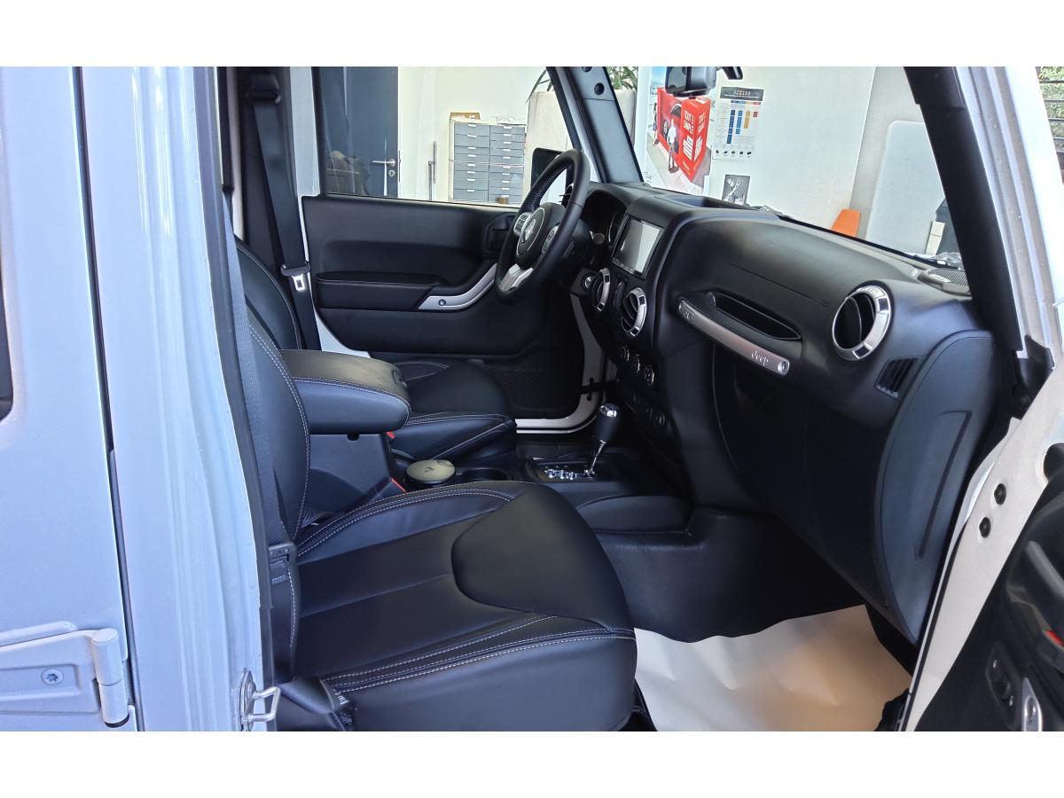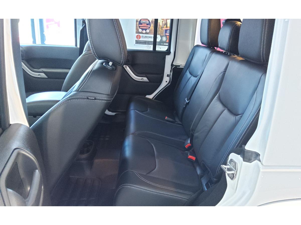 ABS - Système antiblocage des roues avec gestion différenciée en fonction de la nature du solÉclairage automatique de l'habitacle au déverrouillage du véhiculeÉlargisseurs d'ailes couleur carrosserieAccoudoir central avant, coulissant avec bac de rangementAirbags frontaux (conducteur et passager) à déploiement variableAllumage automatique des pharesBanquette arrière inclinable à 12°Banquette arrière rabattable 60/40Capot avec prise d' airCasier de rangement dans le coffreCeintures de sécurité avant réglables en hauteur avec prétensionneur et limiteur d'effortClimatisation automatiqueColoris Bright WhiteConnexions Apple CarPlay et Android AutoCouvre roue de secours souple et noirEcrous antivolESP - Système de régulation du comportement dynamiqueFinitions silverKit fumeurOrdinateur de bordPlaque de protection en acier de la boîte de transfertPlaque de protection en acier du réservoirPlaque numérotée sur tableau de bordPorte-gobelets rétro-éclairésPrise auxiliaire 12v intégrée à la console centraleRégulateur de vitesse (commandes au volant)Répartiteur électronique de freinage REFRoue de secours taille normaleSiège conducteur réglable en hauteurSièges en cuir noir avec finitions grisesStickers "Wrangler" sur le capotSystème audio Premium Pioneer, écran tactile 16,5 cmSystème d'aide au démarrage en côteSystème de contrôle de la descenteSystème de contrôle de la pression des pneusSystème de fixation pour siège enfant ISOFIXSystème de navigation GPS Europe et information traficSystème préventif antiretournementTapis de sol spécifiquesTop in Top : capote souple Sunrider + Hard Top modulaire Freedom Top couleur carrosserieTransmission intégrale Command-TracVerrouillage centralisé avec télécommandeVitres électriquesVolant Jeep à trois branches gainé de cuirVolant multifonctionVolant réglable en hauteur