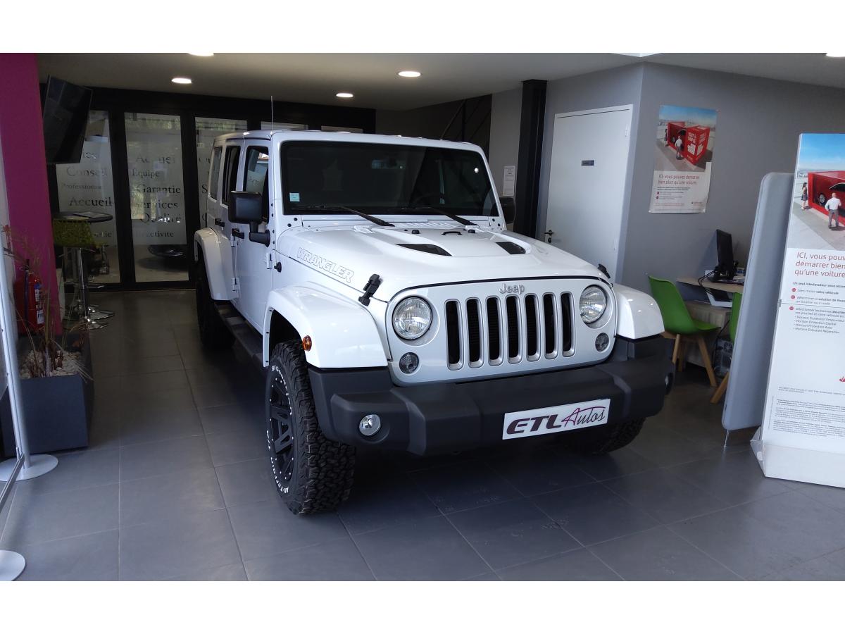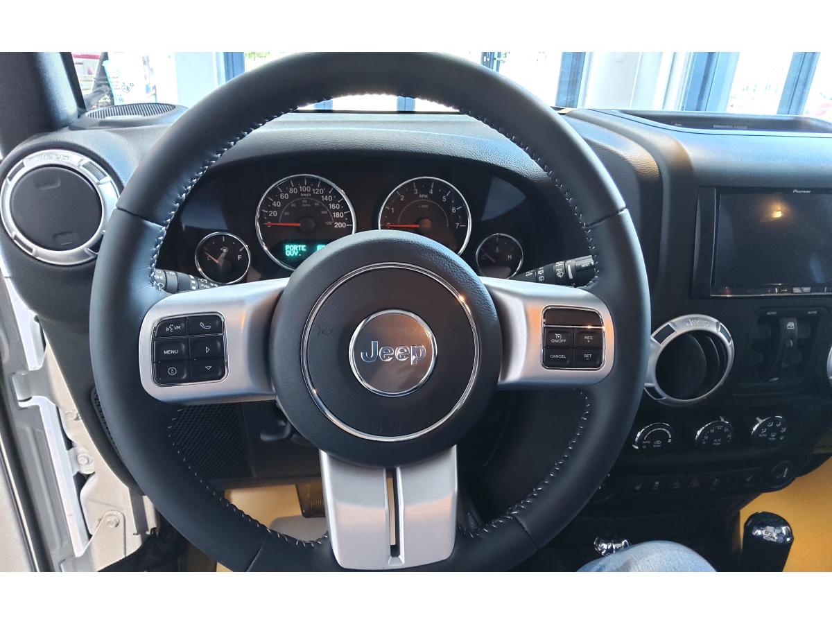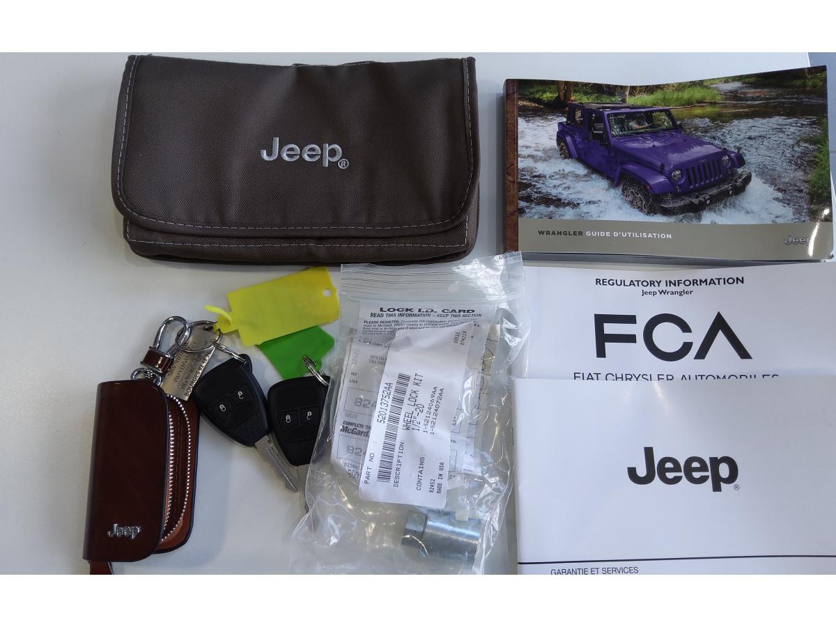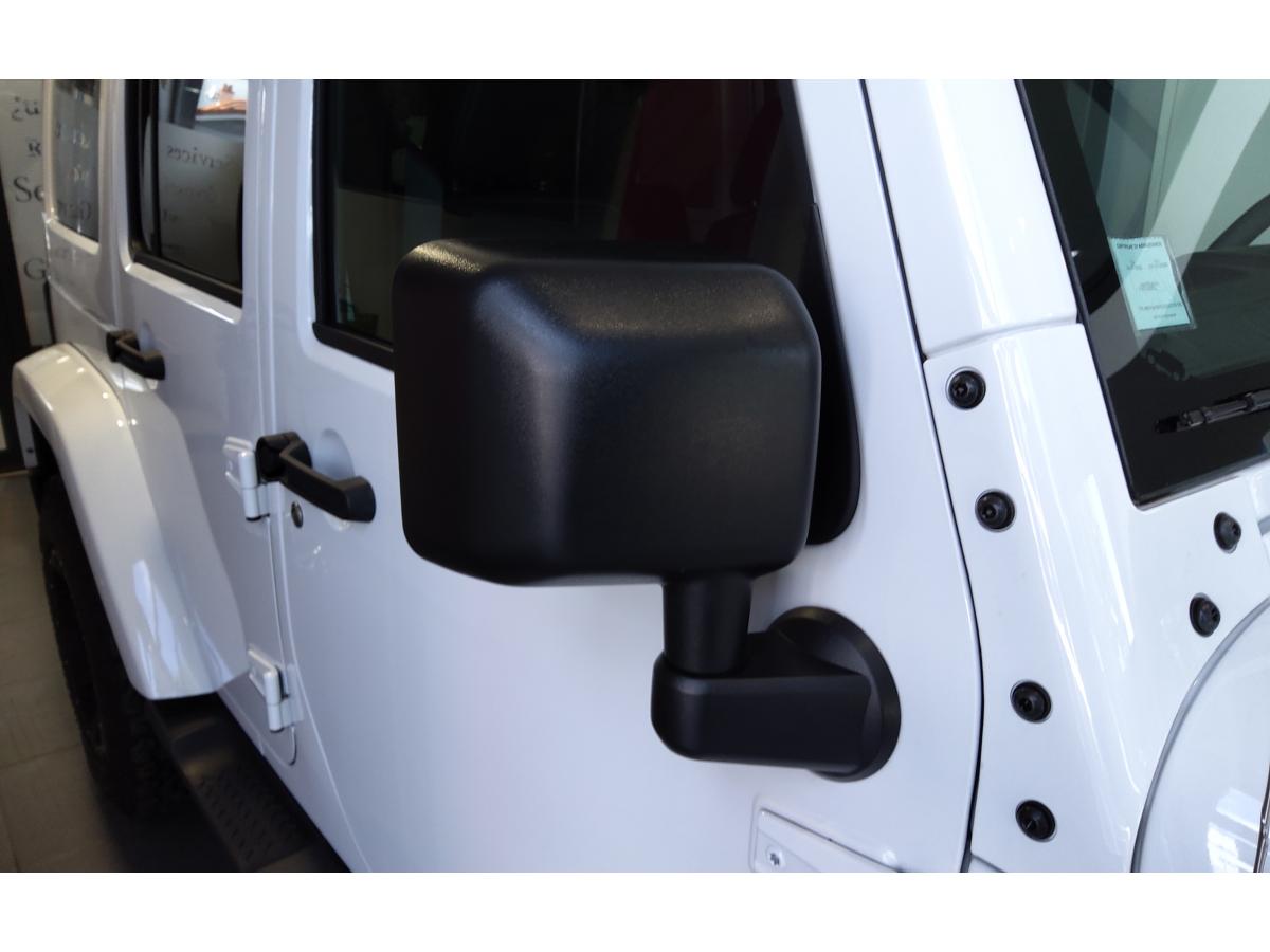ABS - Système antiblocage des roues avec gestion différenciée en fonction de la nature du solÉclairage automatique de l'habitacle au déverrouillage du véhiculeÉlargisseurs d'ailes couleur carrosserieAccoudoir central avant, coulissant avec bac de rangementAirbags frontaux (conducteur et passager) à déploiement variableAllumage automatique des pharesBanquette arrière inclinable à 12°Banquette arrière rabattable 60/40Capot avec prise d' airCasier de rangement dans le coffreCeintures de sécurité avant réglables en hauteur avec prétensionneur et limiteur d'effortClimatisation automatiqueColoris Bright WhiteConnexions Apple CarPlay et Android AutoCouvre roue de secours souple et noirEcrous antivolESP - Système de régulation du comportement dynamiqueFinitions silverKit fumeurOrdinateur de bordPlaque de protection en acier de la boîte de transfertPlaque de protection en acier du réservoirPlaque numérotée sur tableau de bordPorte-gobelets rétro-éclairésPrise auxiliaire 12v intégrée à la console centraleRégulateur de vitesse (commandes au volant)Répartiteur électronique de freinage REFRoue de secours taille normaleSiège conducteur réglable en hauteurSièges en cuir noir avec finitions grisesStickers "Wrangler" sur le capotSystème audio Premium Pioneer, écran tactile 16,5 cmSystème d'aide au démarrage en côteSystème de contrôle de la descenteSystème de contrôle de la pression des pneusSystème de fixation pour siège enfant ISOFIXSystème de navigation GPS Europe et information traficSystème préventif antiretournementTapis de sol spécifiquesTop in Top : capote souple Sunrider + Hard Top modulaire Freedom Top couleur carrosserieTransmission intégrale Command-TracVerrouillage centralisé avec télécommandeVitres électriquesVolant Jeep à trois branches gainé de cuirVolant multifonctionVolant réglable en hauteur